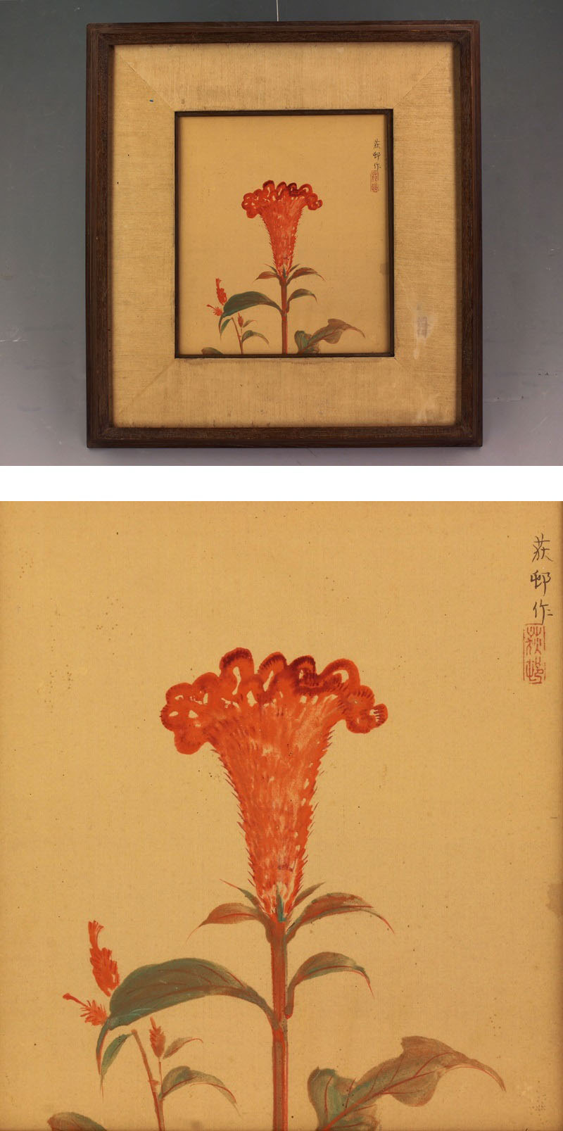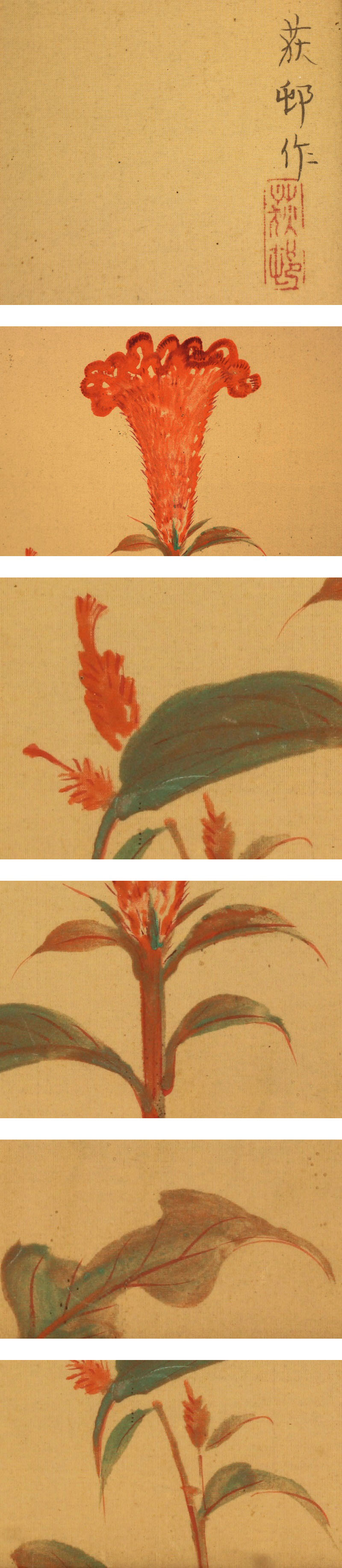 - 【真作】宇田萩邨【鶏頭】◆紙本◆額 z12006
