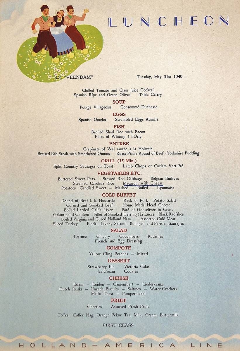 - 稀少!オランダ~アメリカ・ライン・ランチメニュー/SS.Veendam/商船/船旅/B