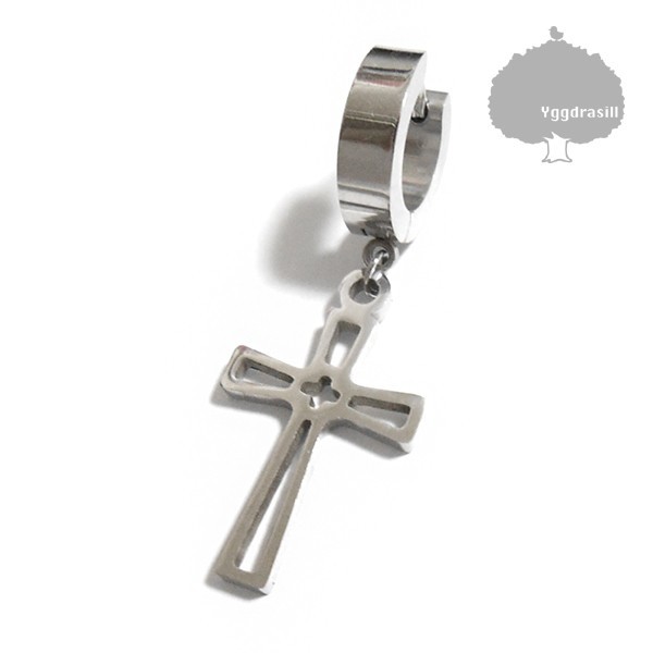 > YGG★新品 クロス 透かし彫り チャーム フープピアス 十字架 太め シルバー 銀 1個 WANNA ONE 18G BTD g-dragon 韓流