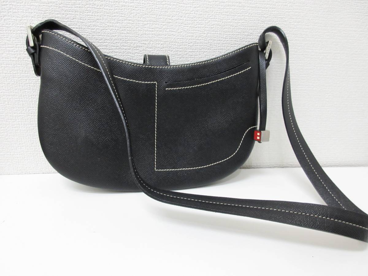 - 美品□BALLY バリー ショルダーバック レザー ブラック 黒 横長 管理1909
