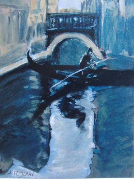 - 三岸節子、【小運河にて(ヴェネチア)】、希少なデッサン・画集画、新品高級額・額装付、状態良好、送料無料、水彩画、風景画、fir