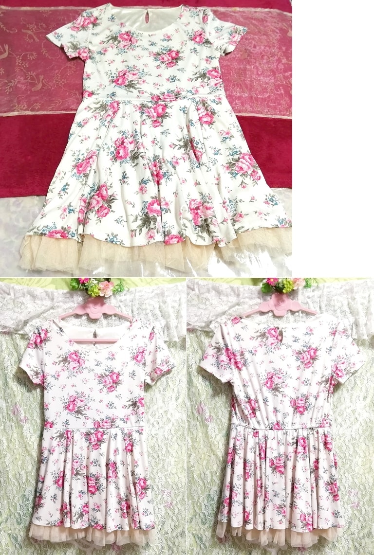 > 白花柄ネグリジェチュールスカートチュニックワンピース White flower pattern negligee tulle skirt tunic dress