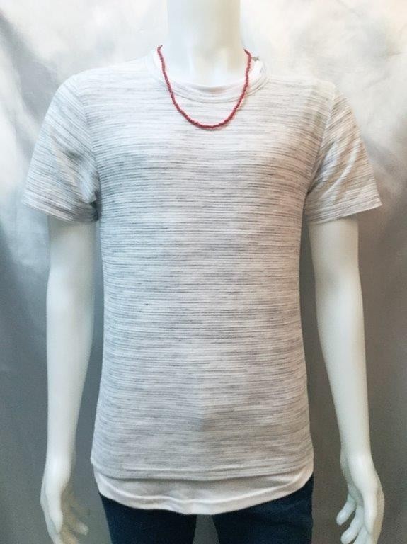 - 1円!メンズTシャツ3点セット tシャツ 半袖 ネックレス付きTシャツ レイヤード ツキリップ柄 グレー系 M 00213