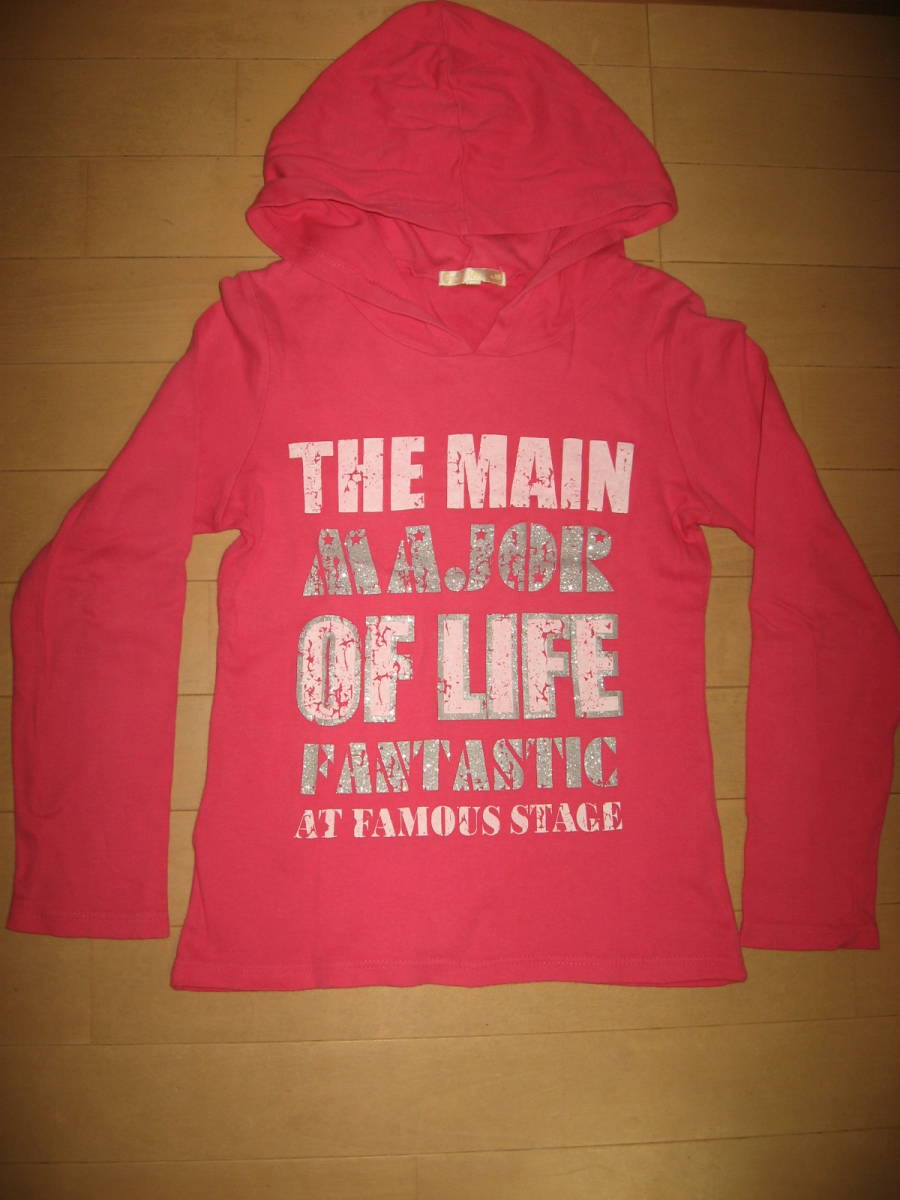 - 長袖 フード付き 150 ピンク 送195 パーカー