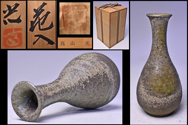 > 高山光 ★ 花入 ★ 共箱共布栞 ★ 炻器風 ★師:加守田章二 / 人間国宝 近藤悠三 ★ 古格すら感じさせる逸品 ★ 種子島 ★