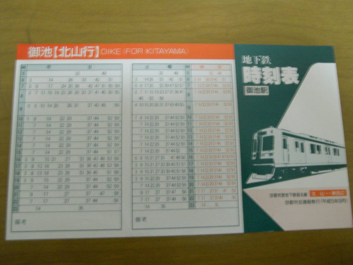 - 地下鉄御池駅時刻表 京都市交通局発行 平成5年9月