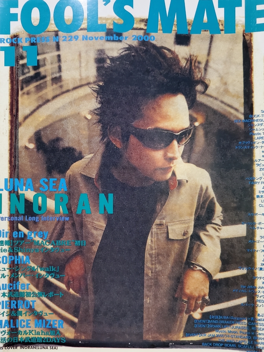 > 【FOOL’S MATE】2000年11月号☆N°229 表紙:INORAN(LUNA SEA) Λucifer、e.mu、Janne Da Arc、LAREINE、TRANSTIC NERVE、LAID他