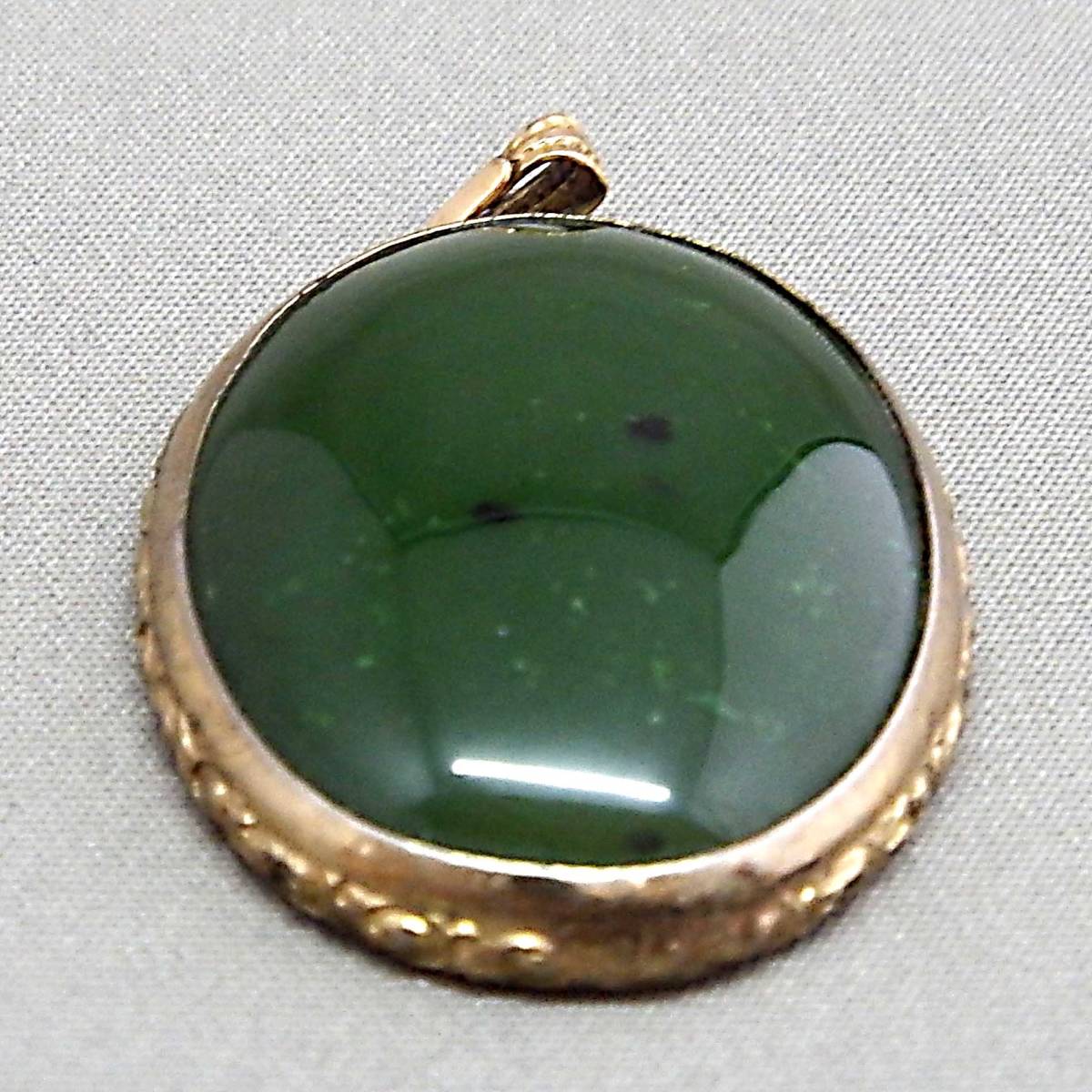 - EU-9967■天然ネフライト ペンダントトップ ダークグリーン 中古
