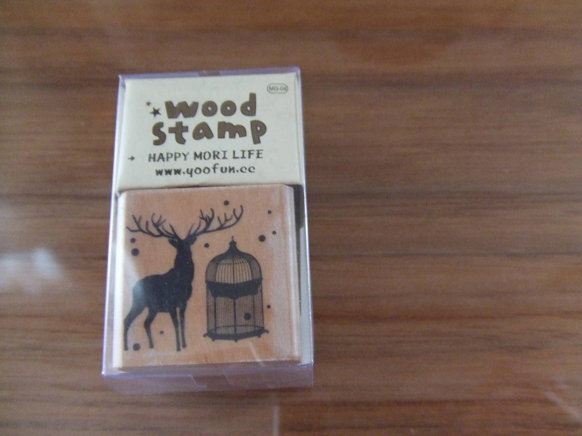 - 木製スタンプ*トナカイ*鳥かご*新品*北欧*