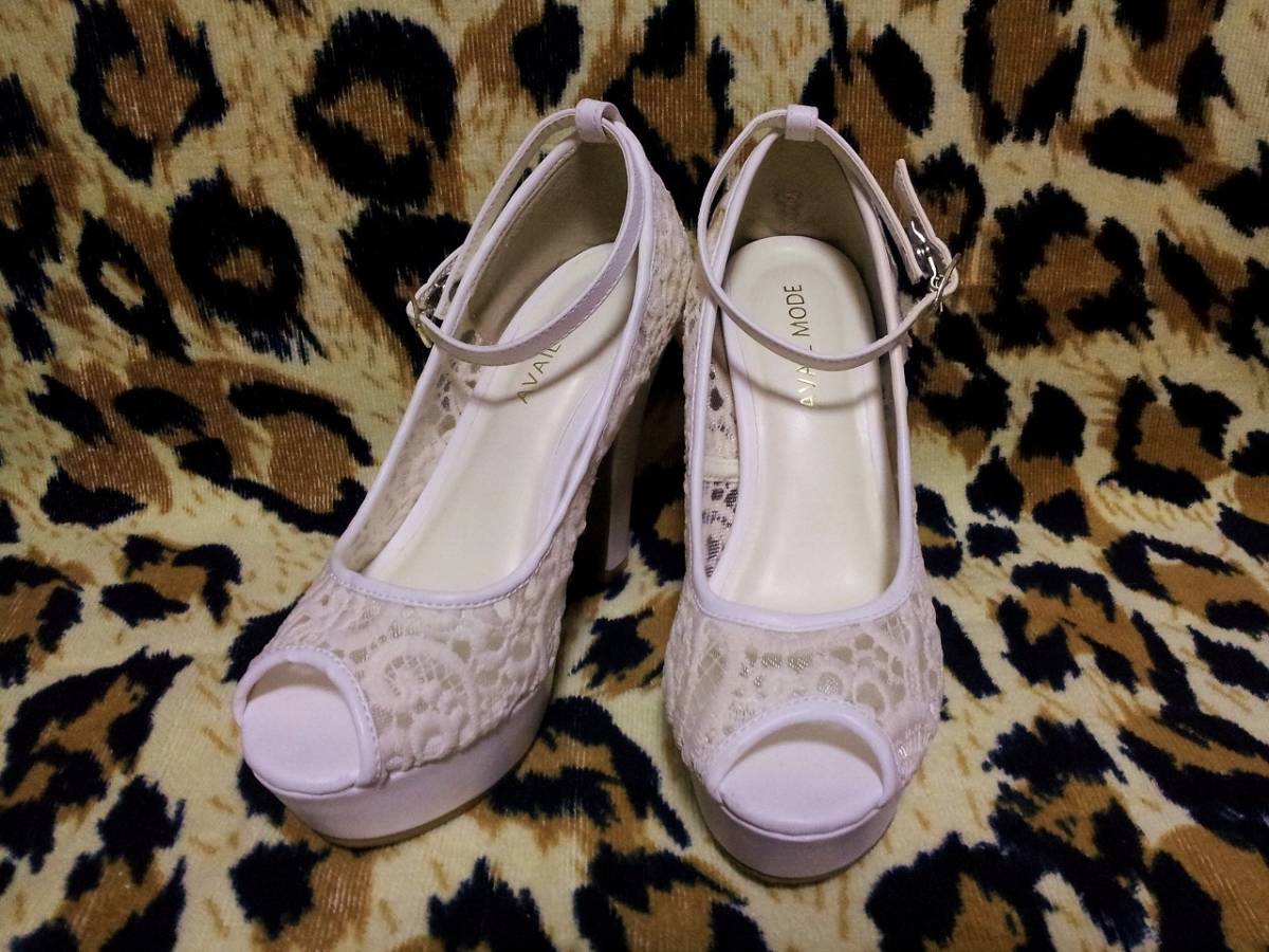 > 中古 ハイヒール パンプス AVAIL MODE 白 23cm~24cm サイズM ピンヒール ヒール高さ約13cm 格安お買い得 状態良好 少しだけ傷み汚れあり