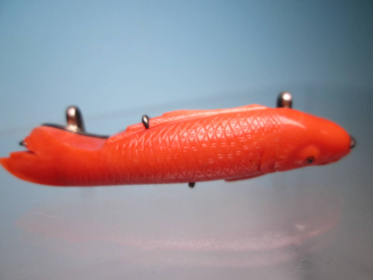 - ☆アンティーク・本珊瑚 綺麗な赤珊瑚の鯉彫刻の帯留め 9,05g