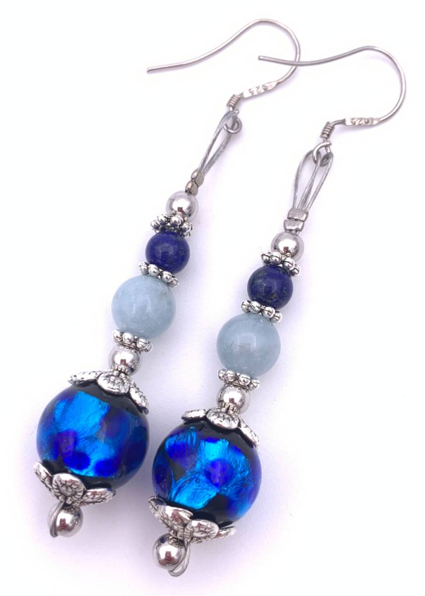 - 天然石アクアマリン&ラピスラズリ&ホタルガラスのピアス