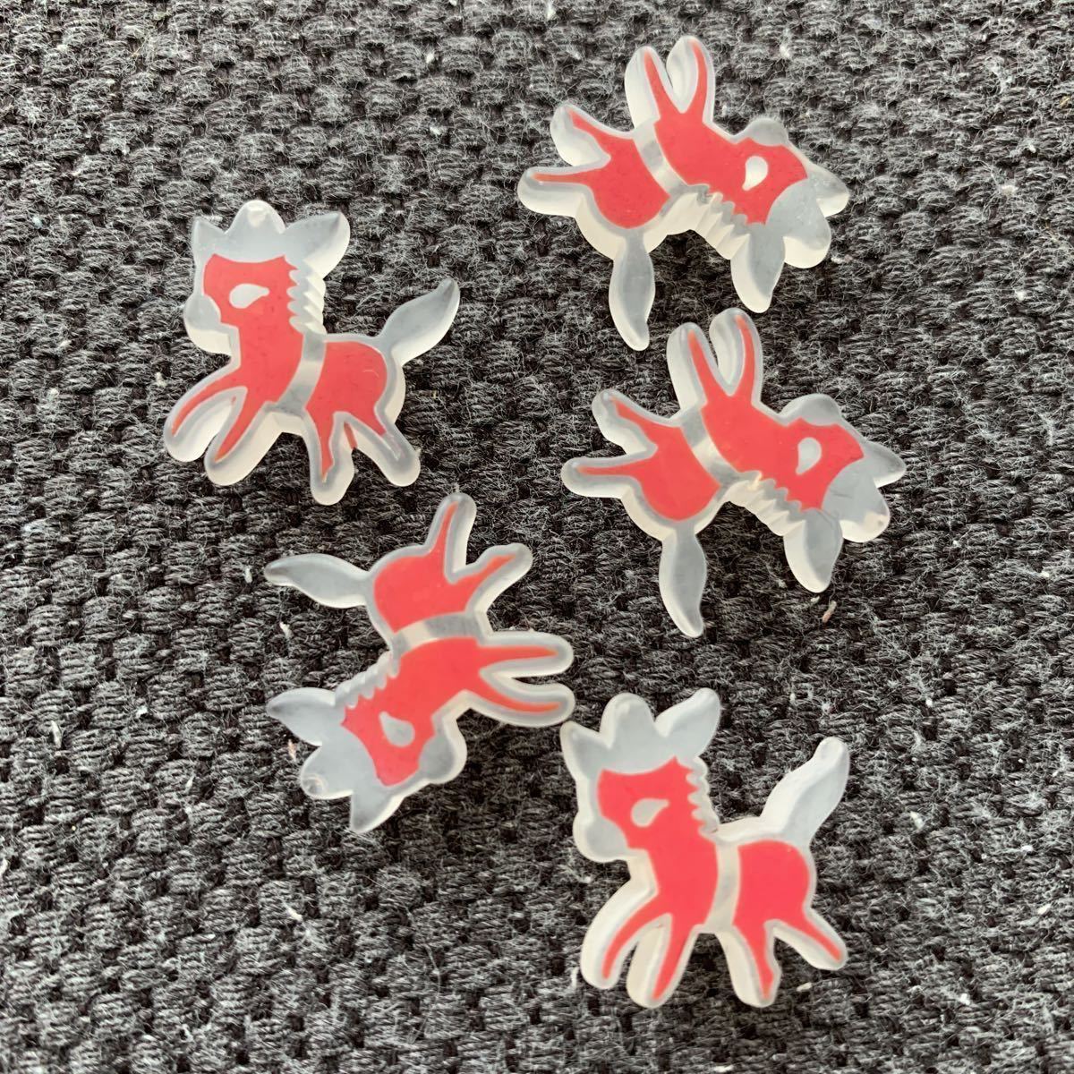 - 5個セット デットストック ボタン ハンドメイド リメイク 手作り ノスタルジック 70's 子供 昭和レトロ コレクター 入学 入園準備 赤 ロバ
