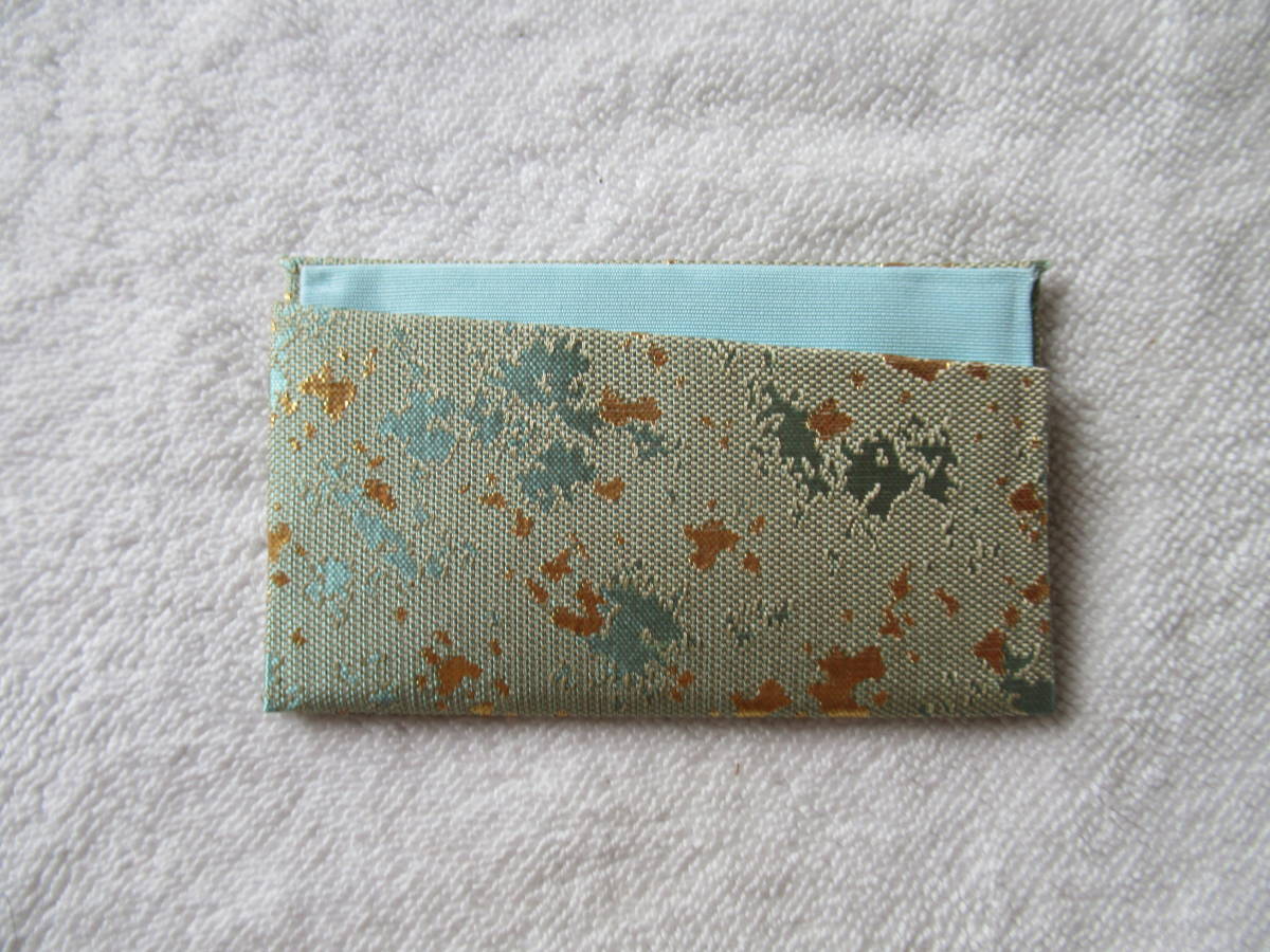 - 手作り 金襴カードケース 定期入れ 保険証入れ (ブルー地金)