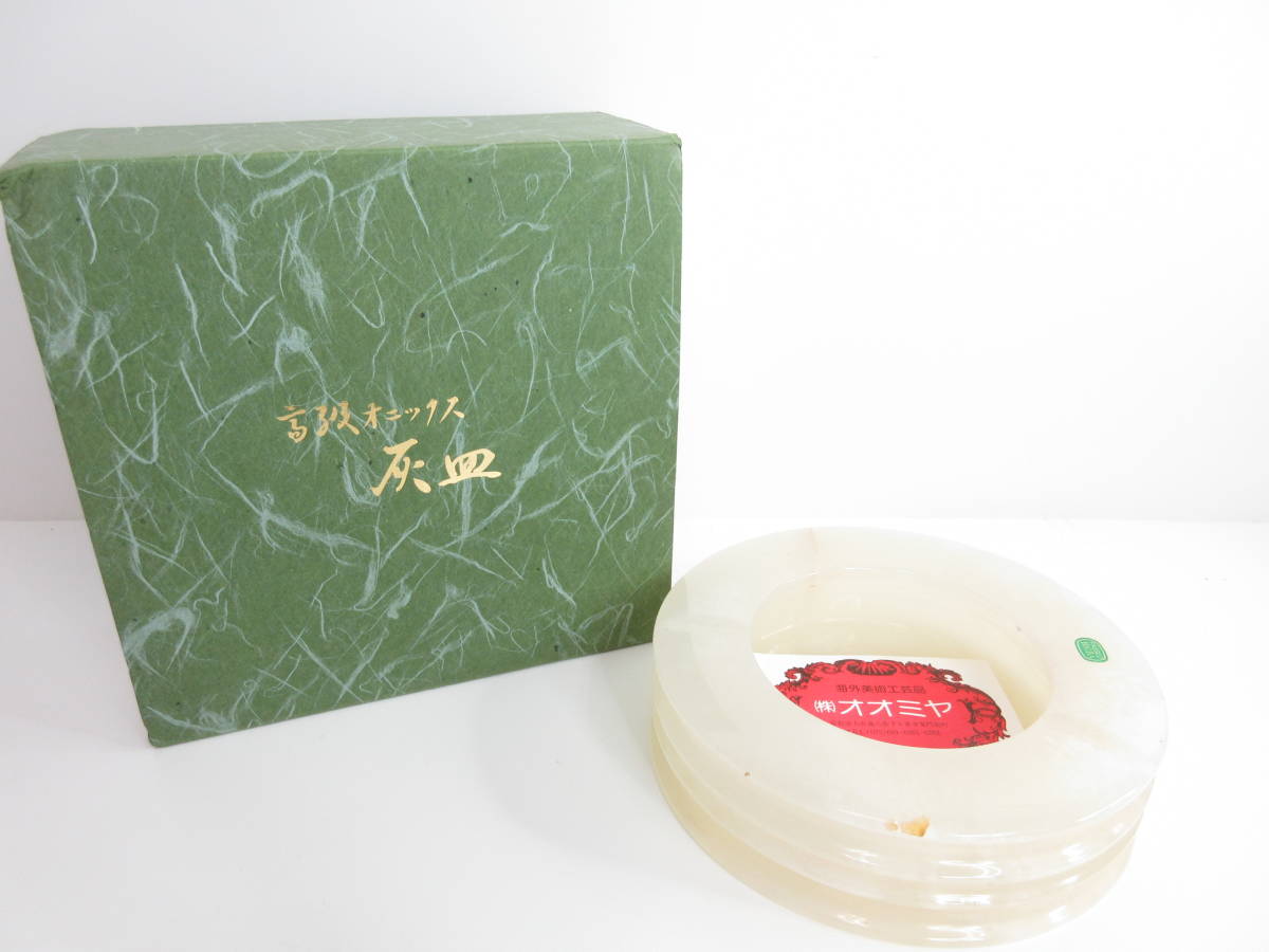 - 美品◆(株)オオミヤ 天然石 灰皿 高級オニックス 石灰岩 大理石 鍾乳石 淡褐色 縞大理石 ベージュ 管理2003 R-1