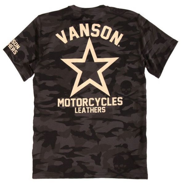 - 当店別注 VANSON ドライ 半袖Tシャツ ★ワンスター★ カモフラ【S】バンソン 吸汗速乾 抗菌防臭 UVカット バイカー 迷彩 ACV-904 男女兼用