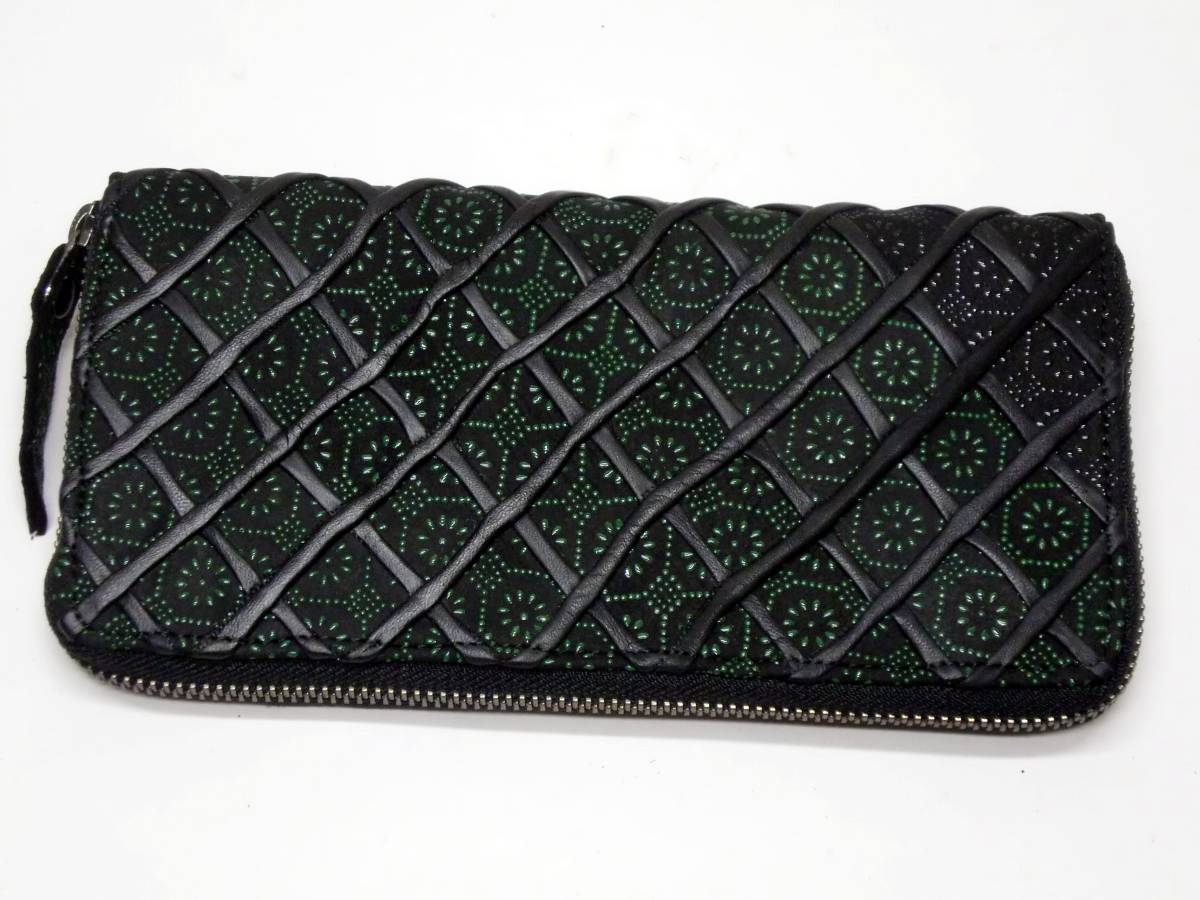 - 一点品 送料無料 285-22印伝鹿革のなまこ壁風デザインワーク ラウンドファスナー式長財布
