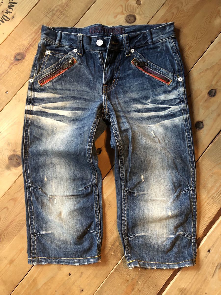 > ヴィンテージ加工★ハーフデニム★短パン★色落ち抜群★いい味★ジーンズ★GENOESE★ひざ立体★カッコいい★Gパン★S(M相当)★アメカジ