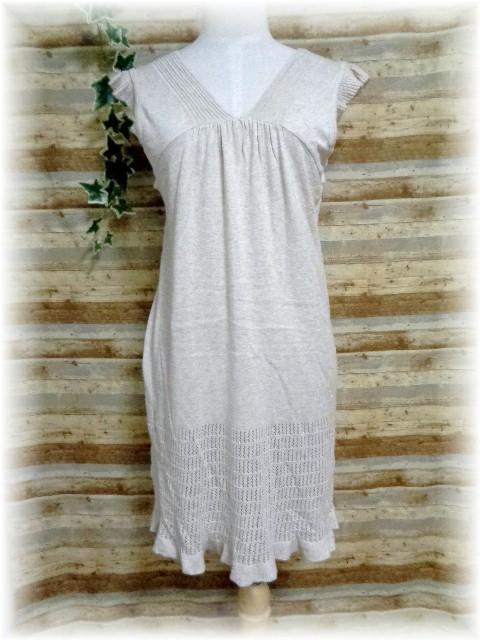 > HusHusH フレンチ袖Vネック ニットワンピース サイズ2 ベージュ杢×ラメ