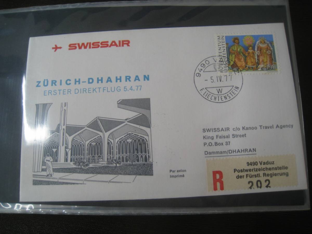 - ★F306 FDC/FFC初日カバー1977 スイス航空 チューリッヒ - ダーラン -