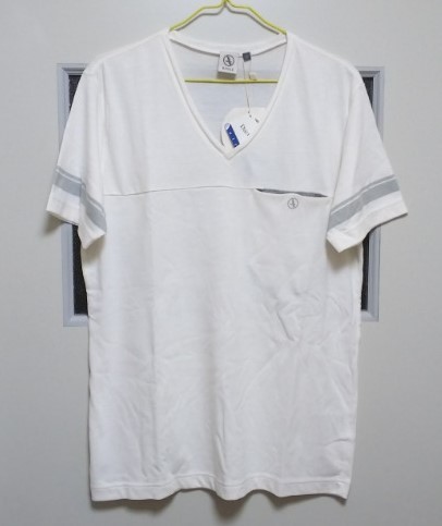 > AIGLE エーグル Tシャツ Vネック 半袖 アイボリー 袖ライン 胸切り替え L・身幅約50cm※未使用/タグ付き/2010年ごろの品/フレンチテイスト