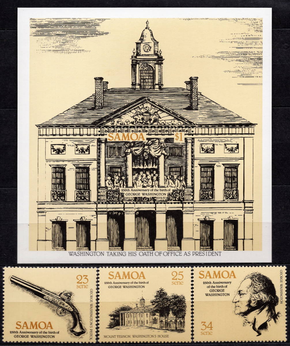 - ★1982年 サモア - 「ジョージワシントン生誕250年」3種完+小型シート 未使用(NH)(SC#567-570)★B-335