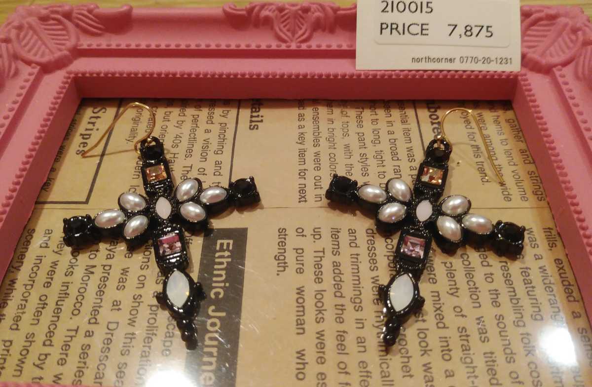- 即決☆定価7875円!! ノースコーナー パール&パープル系ビジュー ロザリオ ピアス♪クロス 十字架モチーフ ブラック系