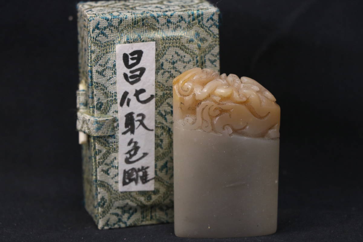 昌化巧色彫 印材 篆刻 臥龍鈕 サイズ3.5x1x5.5cm 重さ52グラム 印章 書道 文房
