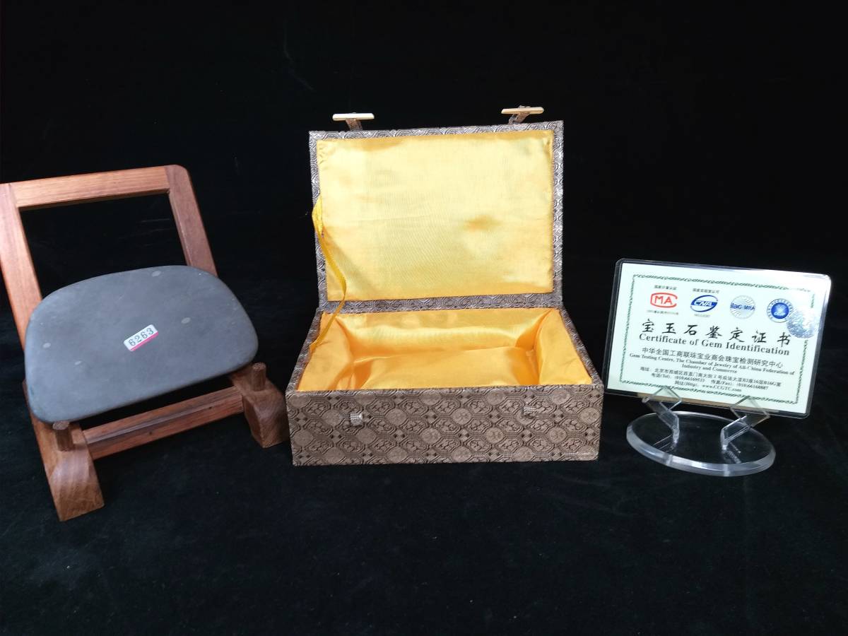 この一品は、中国最高国家級鑑定証書をお付けします。もしご希望があれば、3500円 (落札金額別途)にて、最極上質な専用手工芸絹張り木製収蔵ケースをお付けできます。