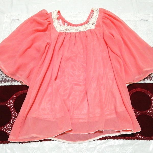 > サーモンピンクシフォンネグリジェチュニック Pink chiffon negligee tunic dress