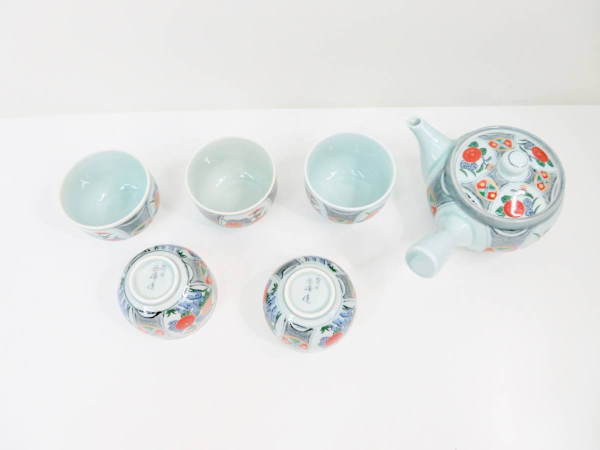 - 極美品◆有田焼 西峰作 急須 湯呑 茶器セット 6客セット 茶漉し 花柄 和食器 食器 茶器 陶器 磁器 伝統 工芸品 管理2011 Z-2