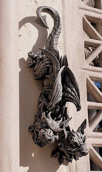 > 西洋彫刻 双頭のドラゴン彫像 ガーゴイル 壁掛けディスプレイ/ 中世ヨーロッパ 教会 守護モンスター お庭 ガーデニング プレゼント(輸入品