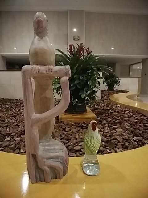 - ペアセット★工芸ガラスと木工◇オウムの置物 2ペア カラフル 可愛い!