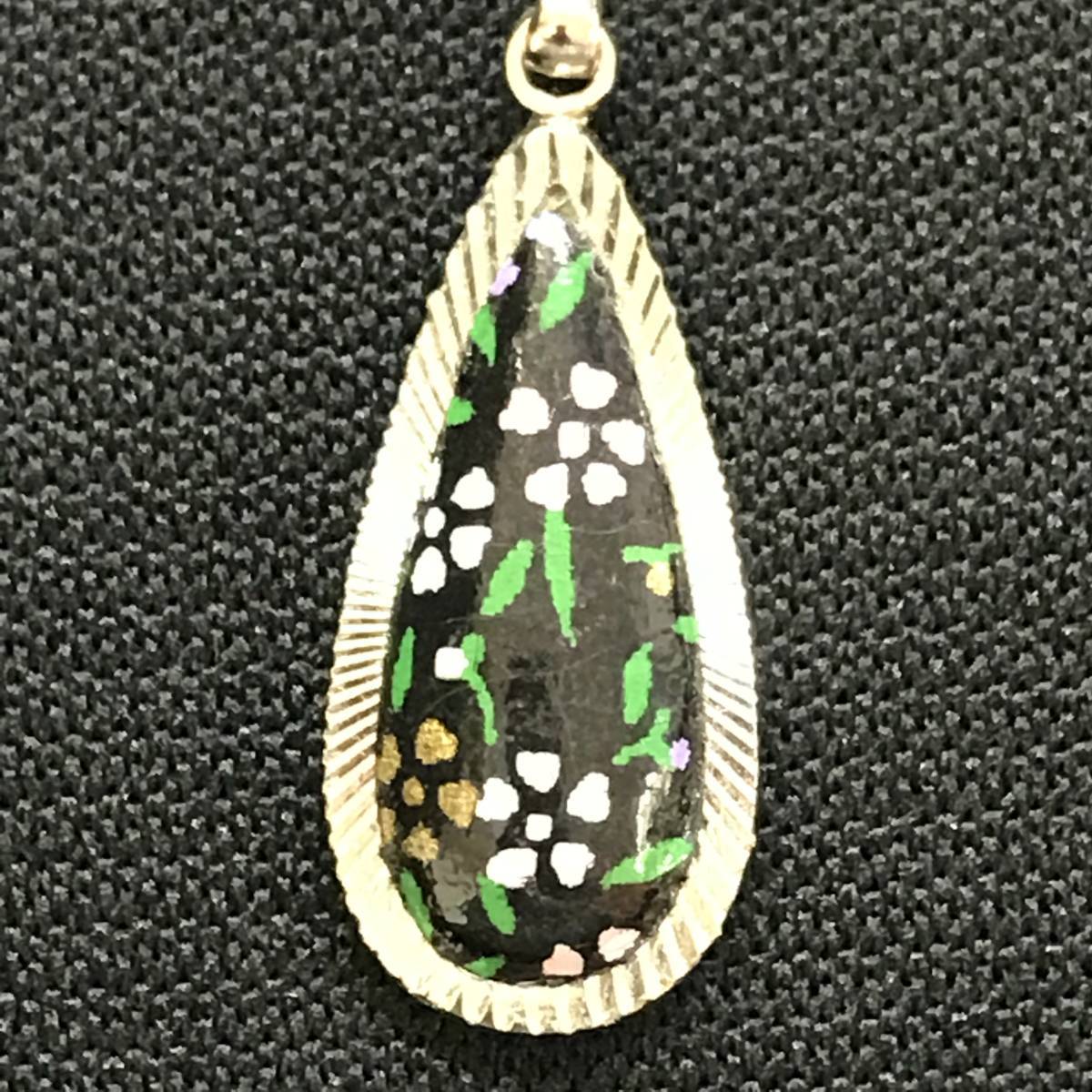 - 【中古 送料込】しずく型 花柄模様 ペンダント 長さ約40cm◆B0267a