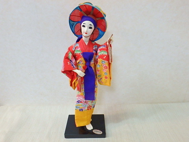 - 100s011y 沖縄民芸品 琉球人形 琉装 めんそーれ 夫婦総合民芸 沖縄人形 置物 飾り 高さ約38cm(北海道・沖縄・離島は発送不可)