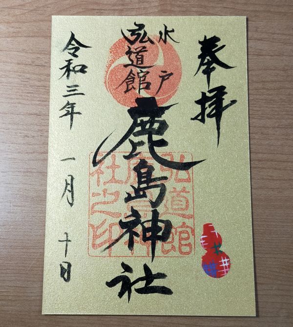 - ◎◆弘道館鹿島神社(茨城・水戸)◆御朱印 令和3年(2021年)1月 金色ポストカード版