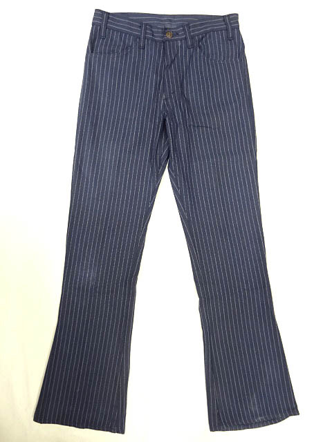 > ビンテージ LEVIS リーバイス 70S 希少 レア ビッグE スタプレ ストライプ 総柄 青 紺 ネイビーフレア ベルボトム パンツ ワバッシュ 珍品