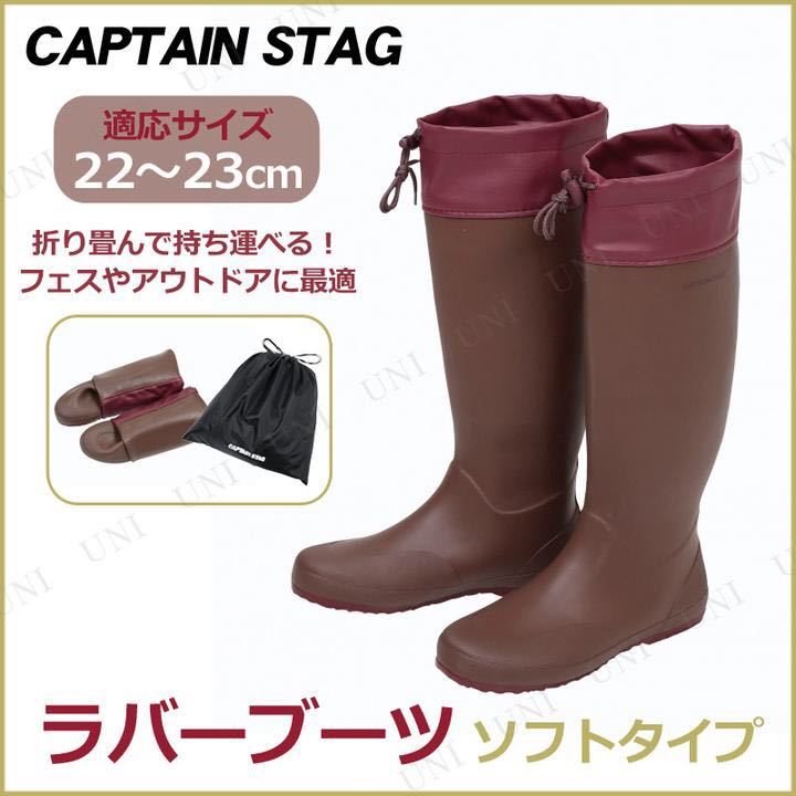 > CAPTAIN STAG(キャプテンスタッグ) ラバーブーツ ソフトタイプ(収納ケース付) ブラウン 夏フェス 畑 アウトドア キャンプ 田植え S