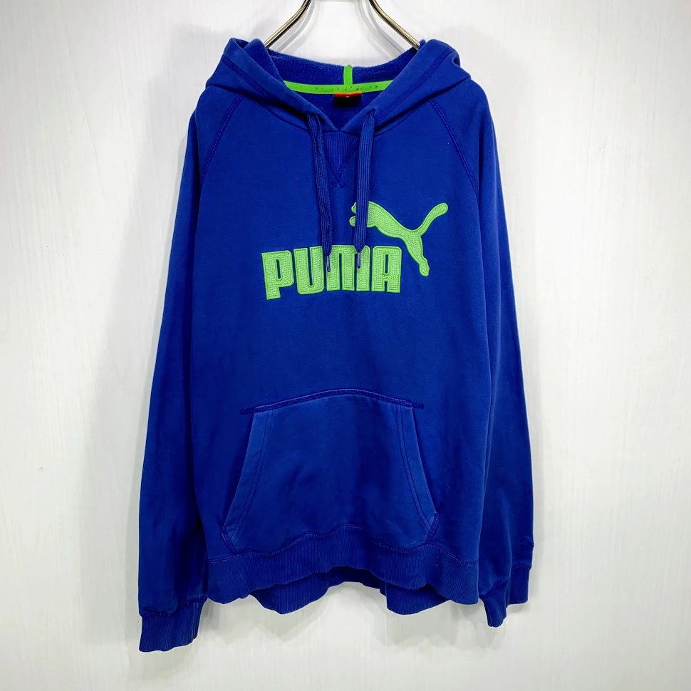 - Puma スウェット パーカー Lサイズ ブルー 青 プーマ ロゴ 古着 メンズ
