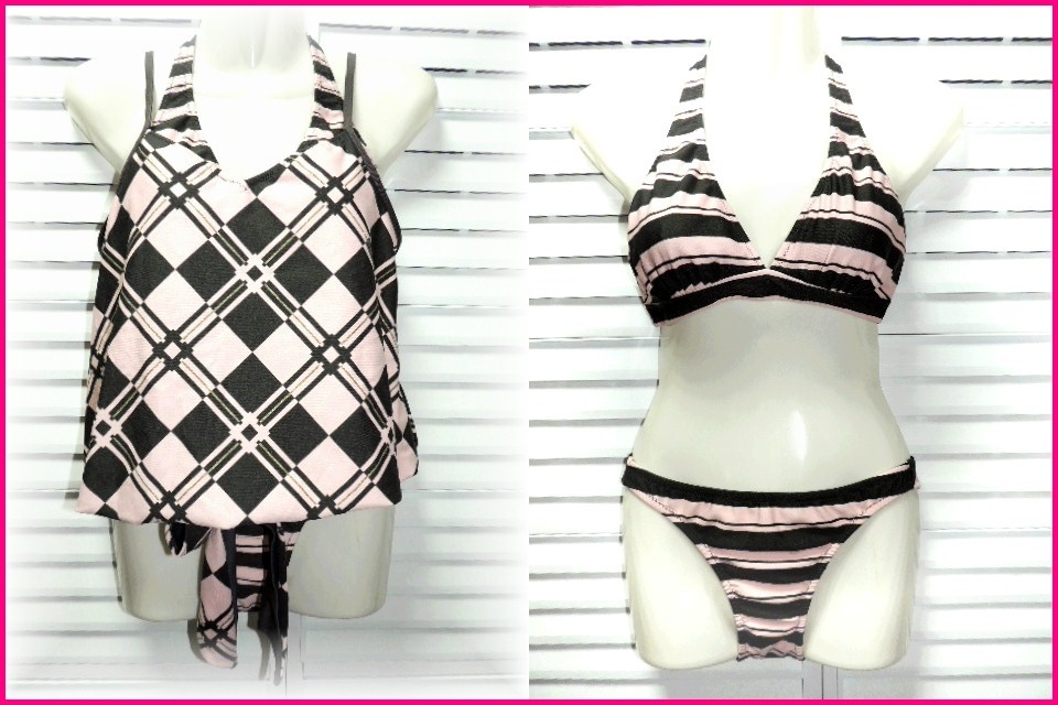 - トータス・イレブン セパレート水着 タンキニセット 9号/M ピンク×ブラウン
