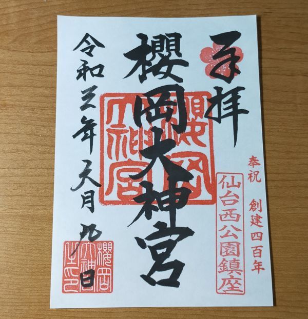 - ◆櫻岡大神宮(宮城・仙台・大町西公園)◆御朱印 令和3年(2021年)6月