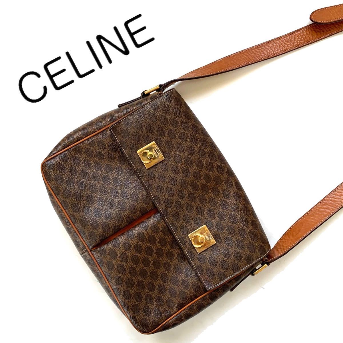 > 【送料無料】celine セリーヌ レア品 マカダム柄 ショルダーバッグ レザー 金具 ロゴ 斜め掛け カバン PVC レザー ヴィンテージ