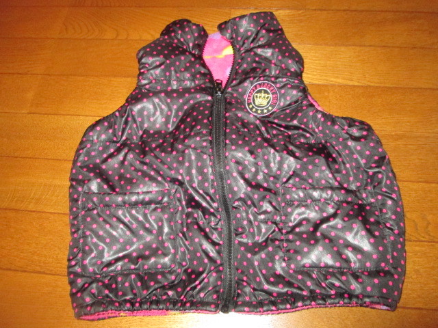 - 120 記載130 裏フリースの黒地水玉模様 中綿ベスト