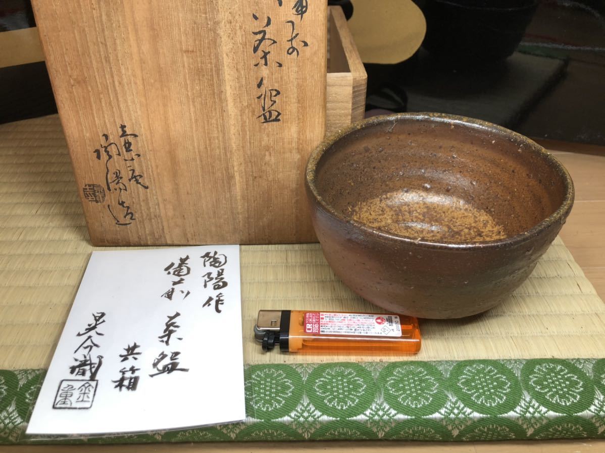 - 最上作 備前 備前焼 壺心庵 人間国宝 金重陶陽 茶碗 茶道具 金重晃介 鑑定書