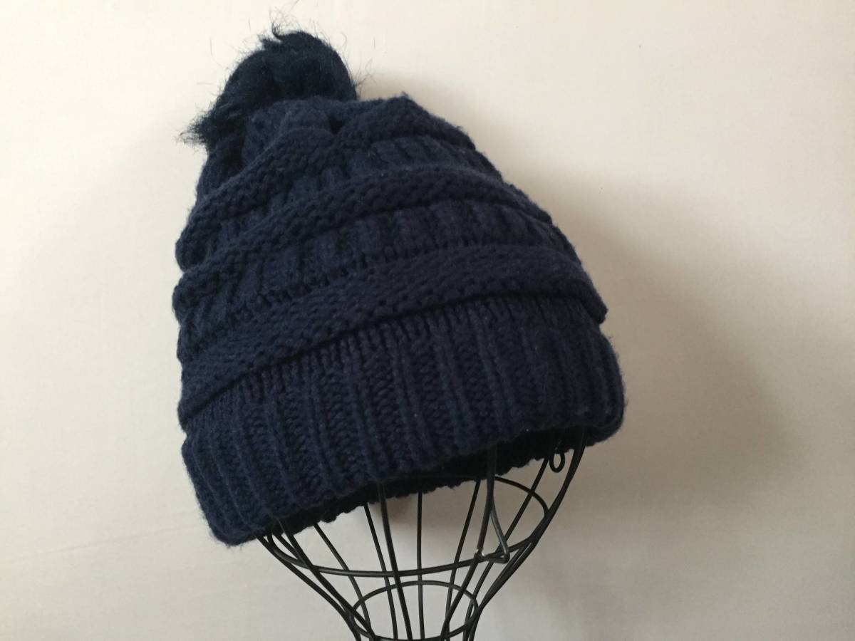 - ★self esteem★紺★デザイン織りのポンポン付きニット帽★10034