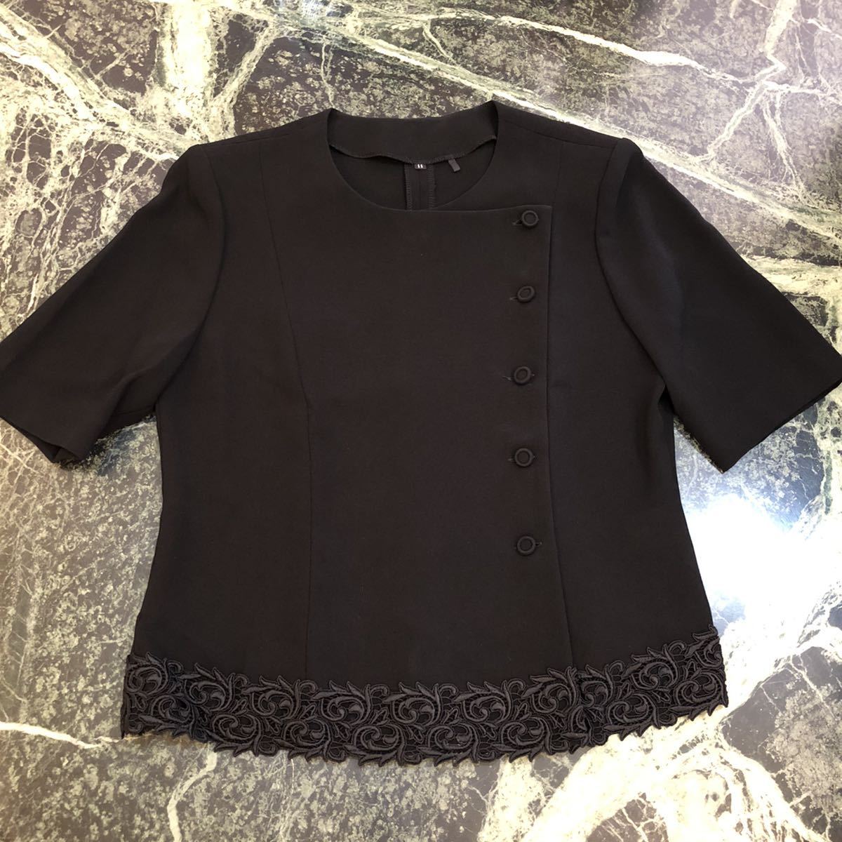 > 【極美品】ミセス半袖ジャケット★レース 黒 11号 Mサイズ ブラック フォーマル エレガント ノーカラージャケット レディース
