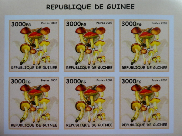 - ギニア切手『きのこ』無目打 6枚シート 2002 A-f