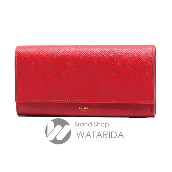 - セリーヌ CELINE 長財布 ラージフラップウォレット 10B563BEL.27ED レッド グレインドカーフスキン 保存袋・注意書き付 送料無料
