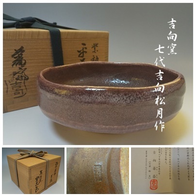 - 【M-81】吉向窯 七代 吉向松月(蕃斎) 紫釉 馬盥茶碗 共箱付 茶道具