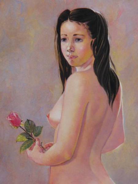 - 島根清、【お花をあげます】、希少な額装用画集より、新品額装付、状態良好、送料込み